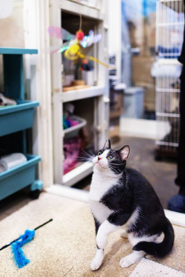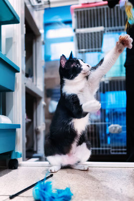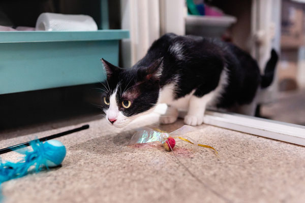 - 「とにかくおもちゃ大好きで、見つけるとものすごい勢いで飛び掛かってきます。オス相手でも馬乗りになってじゃれ合うなど、やんちゃなところもあります。」